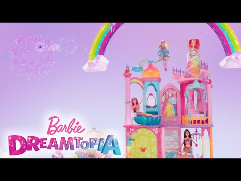 Такой яркий и красивый дворец подчёркивает радужную тему во всём своём облике. Цветные башенки, фигурки бабочек и рисунки радуг делают дворец по – настоящему волшебным. Войдите в замок Барби через красочно оформленные двойные двери и начинайте придумывать свою, самую чудесную, сказку!